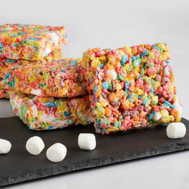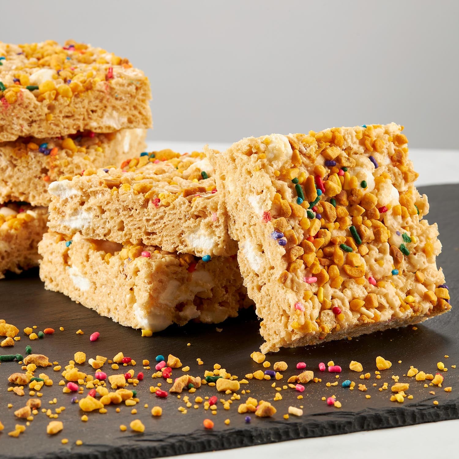 New! A delightful twist on our Original Crispie, bursting with vibrant colors and fruity flavors. This confection is a playful combination of marshmallows and Fruity Pebbles!