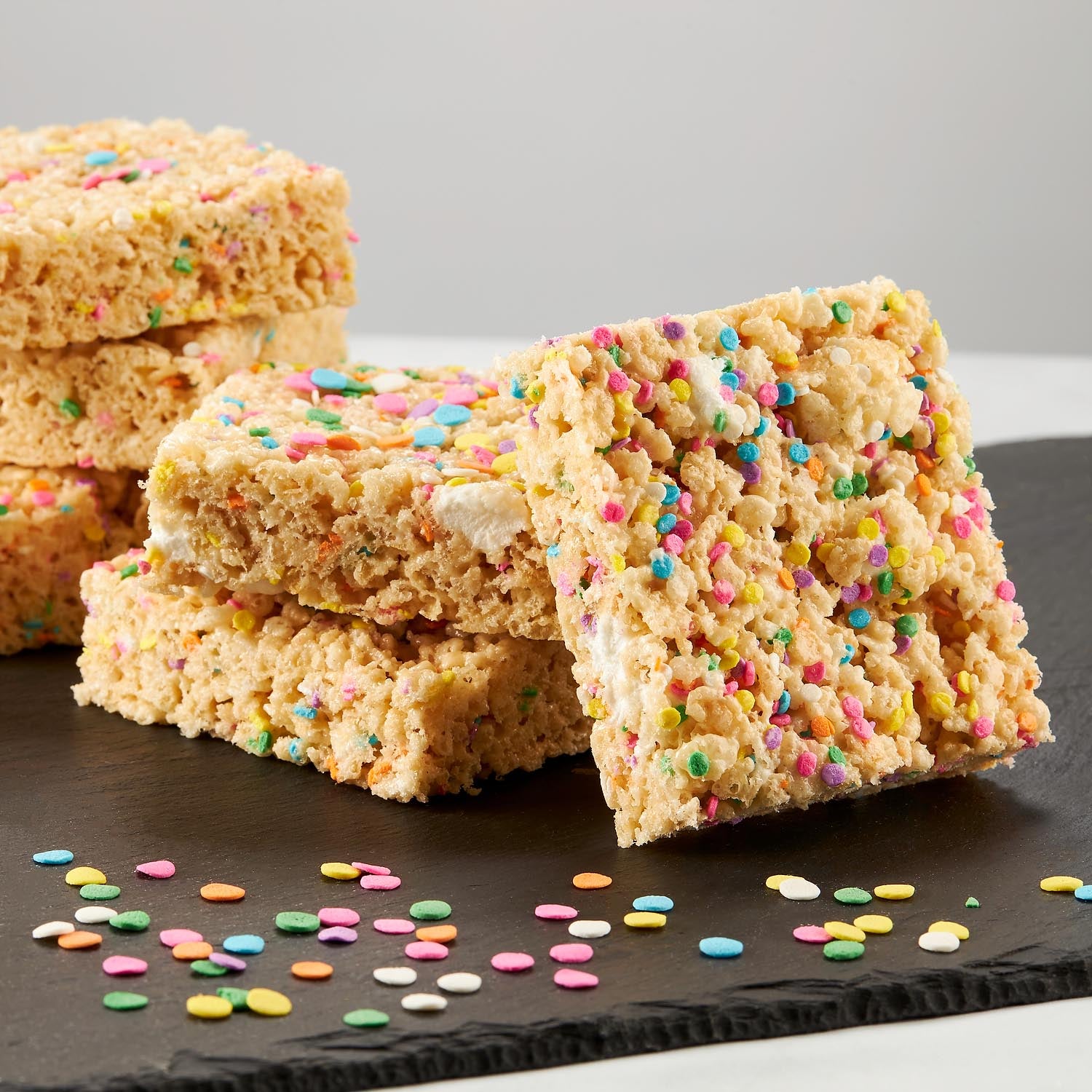 The perfect treat for a celebration, our Birthday Cake Crispie tastes just like a slice of delicious cake. Topped with cute pastel sequins, these crispies will get the party started.
