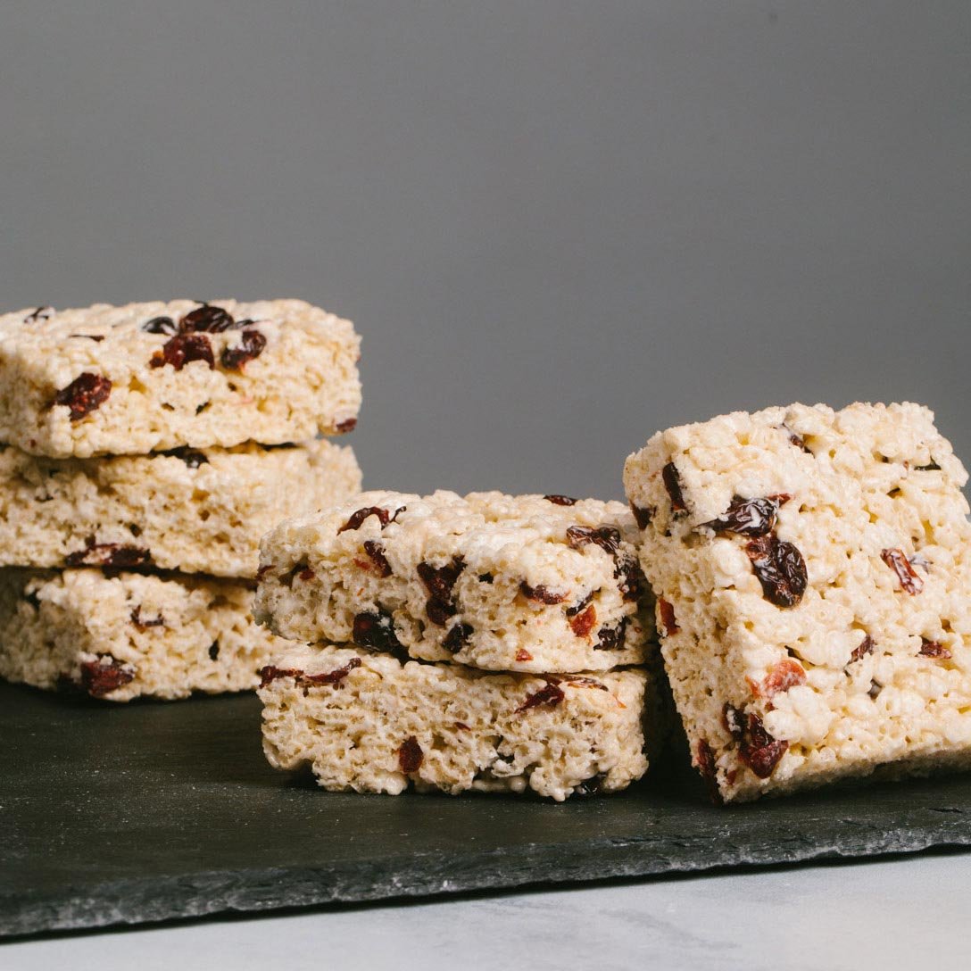 The sweetness of marshmallows and the familiar crunch of the crispy puffed rice come together in a treat that is handcrafted perfection! Mixed with dried cranberries brings a burst of fruity tartness in every bite.