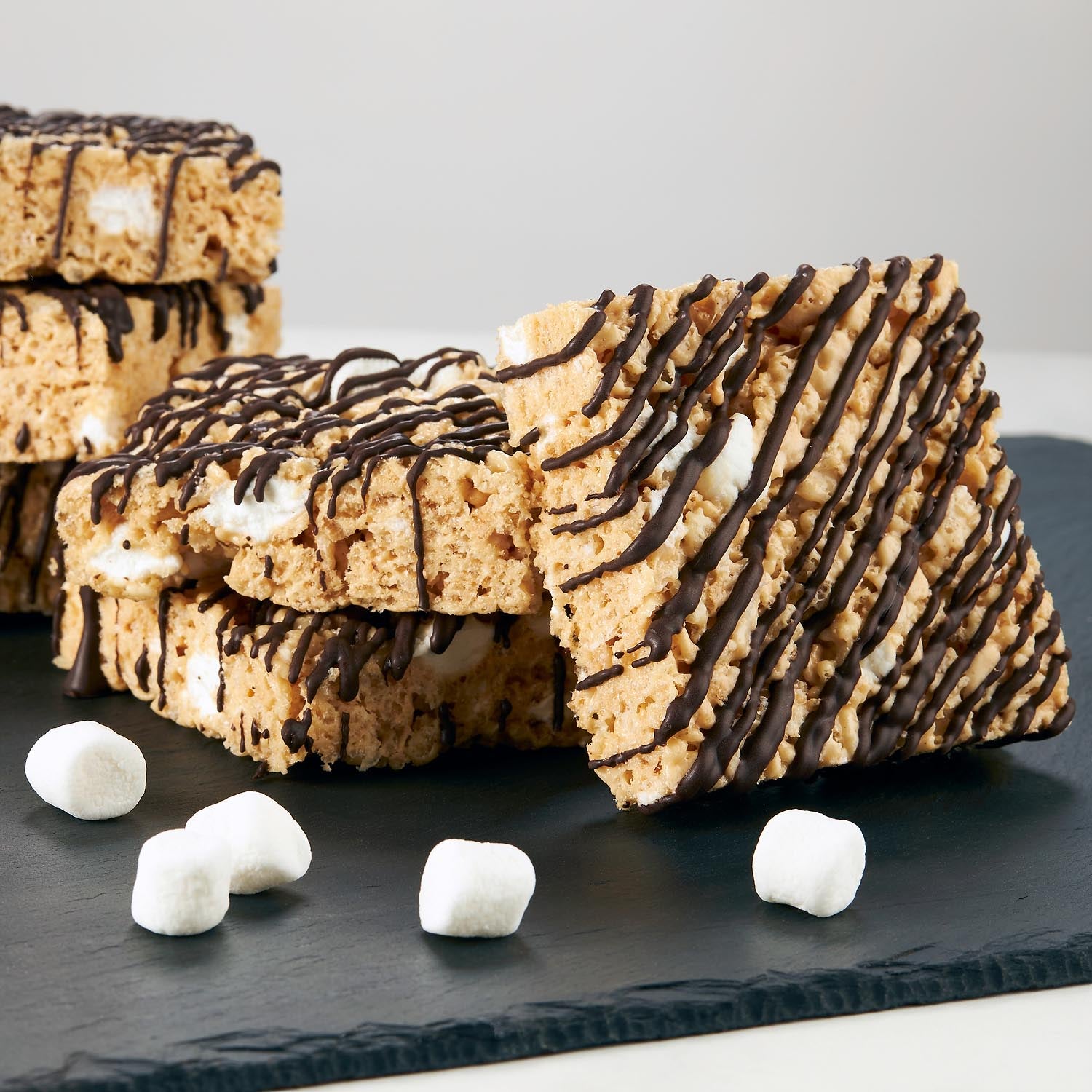 You will have some campfire memories when you bite into one of our S’More Crispie squares. Made with graham cereal with mixed in marshmallows and drizzled in chocolate, it truly will have you asking for s’more.