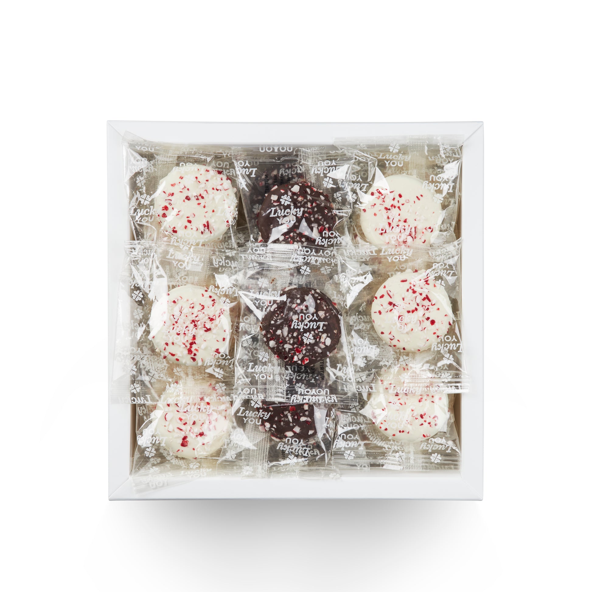 Our best-selling Candy Cane Crunch Cookies are real OREO® cookies enrobed in decadent white or dark chocolate confection by Lucky You and sprinkled with just the right amount of peppermint candy cane sprinkles.