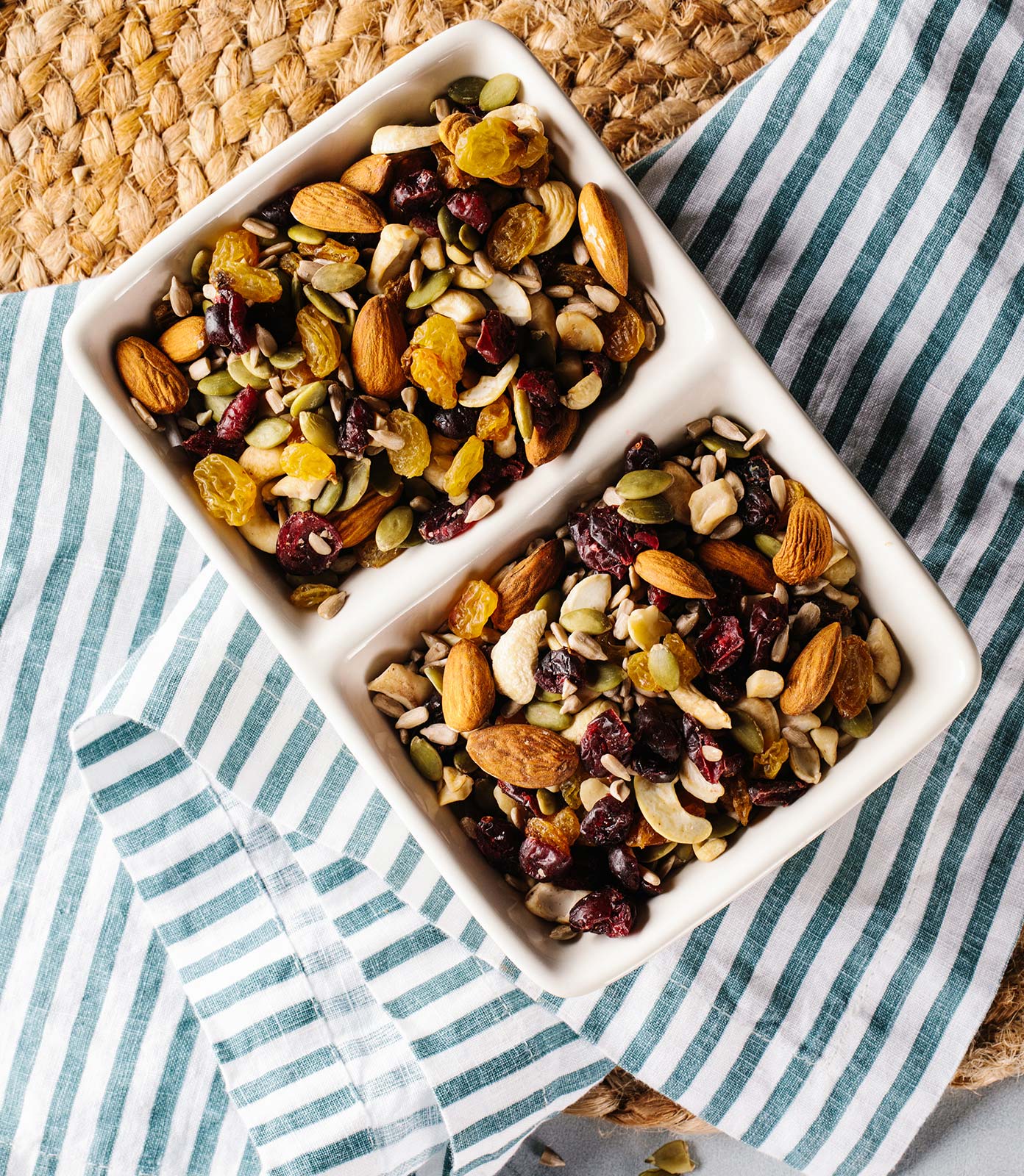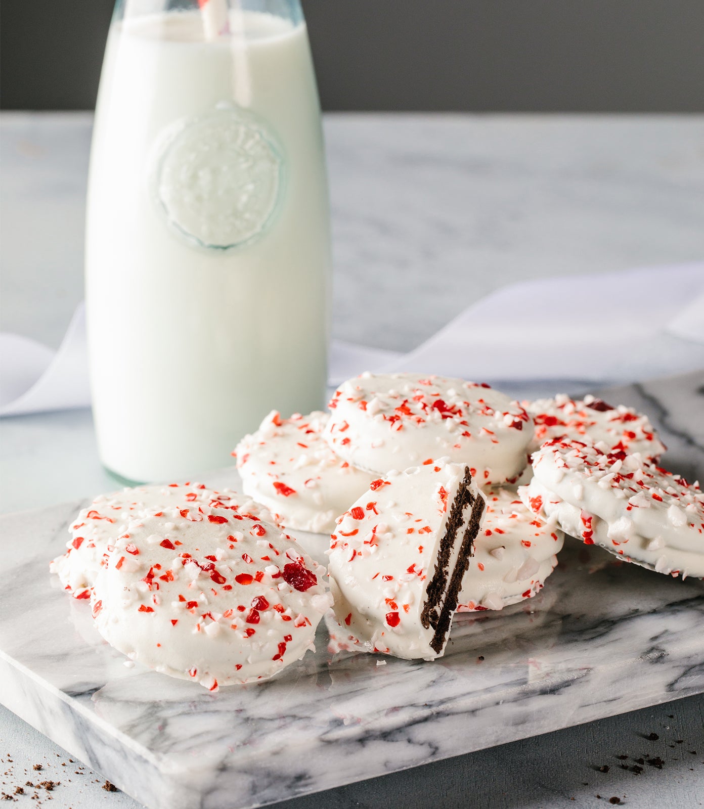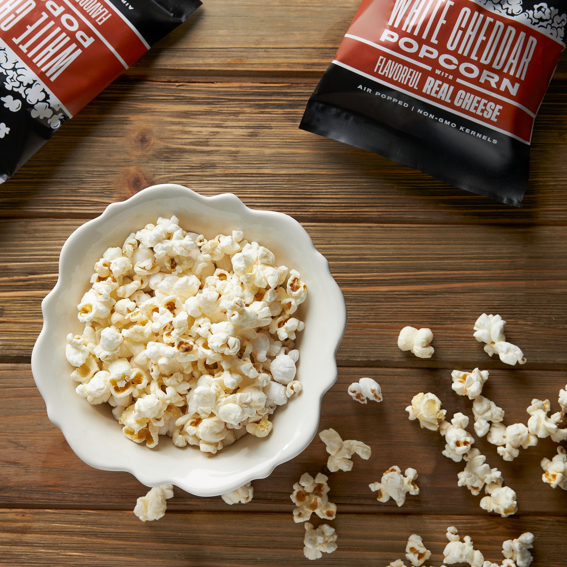 Bottom Box: 12 Popcorns (assorted between White Cheddar, Butter, & Pink Himalayan), 3 Cranberry Nut Trail Mix packets, 3 Gummi Bear packets, 4 Drizzled Oreo Crispie Squares, 18 Candy Cane Crunch OREO cookies (assorted between white & dark chocolate).