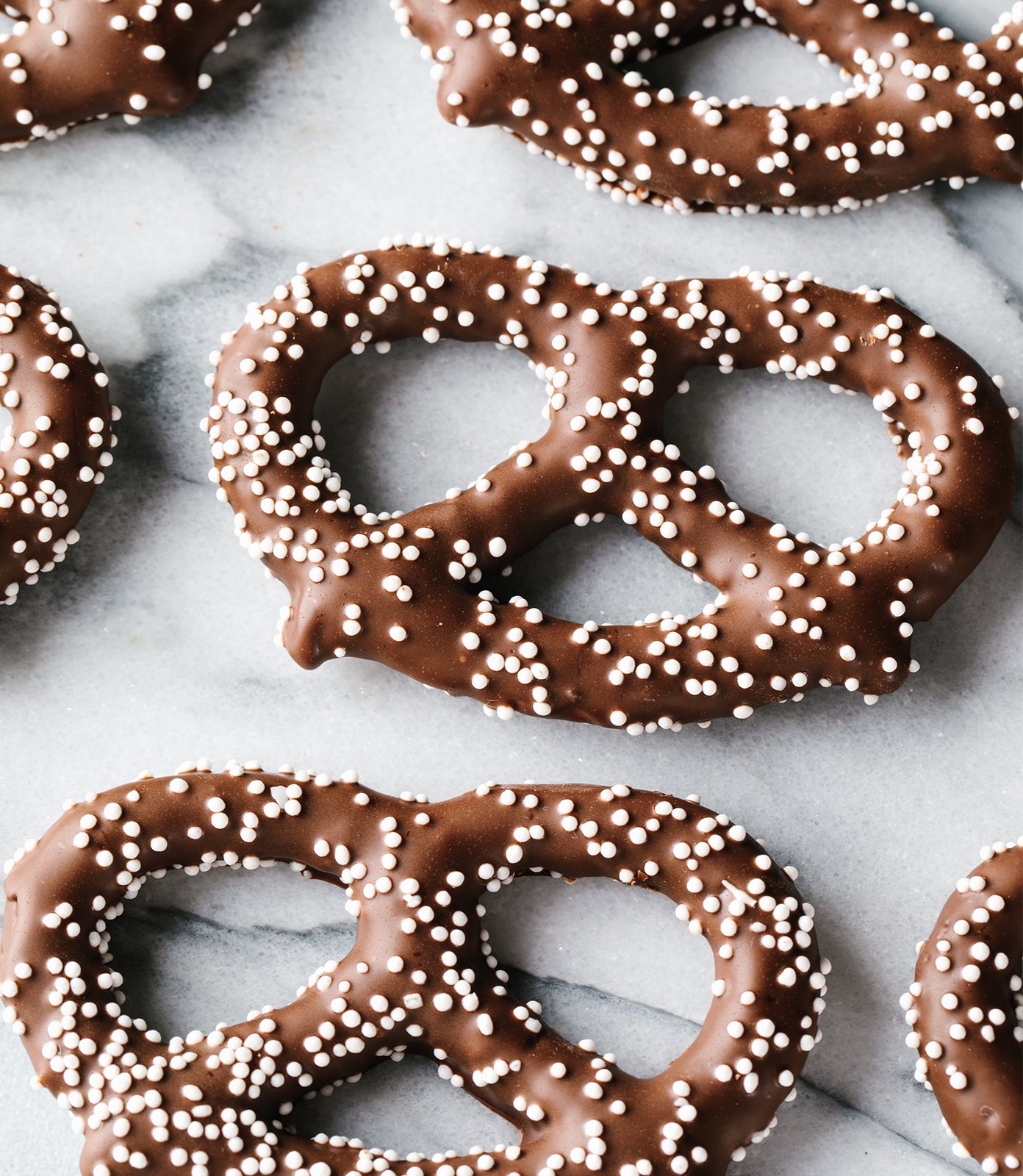 2nd Box: 20 Dark Chocolate Pretzel Twists with white nonpareils
